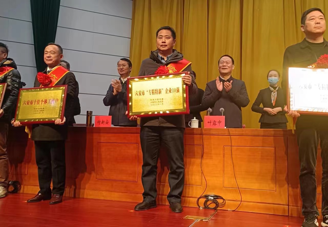 安徽正陽機械科技有限公司被中共六安市委、六安市人民政府授予六安市“專精特新”企業(yè)10強榮譽稱號